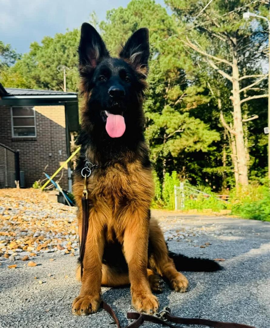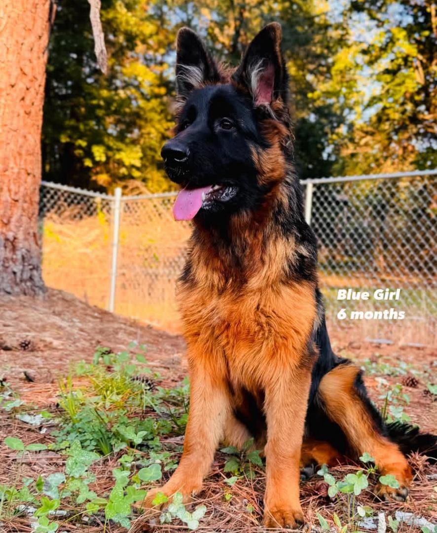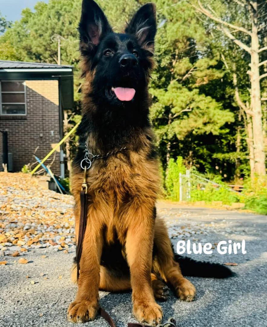 - Miss. Blue is a stunning German Shepherd puppy ready for her forever home. At just 6 months old, she has a beautiful, luxurious red and black long coat that makes her truly stand out. Her bright, intelligent eyes and happy, open-mouthed expression show a playful and loving personality. This sweetheart is at the perfect age for training and will thrive in a home committed to continuing her socialization. Miss. Blue is an attentive and charming companion who is eager to learn and ready to start her new life as a loyal family member. She's a perfect addition for anyone looking for a smart, beautiful, and devoted best friend.