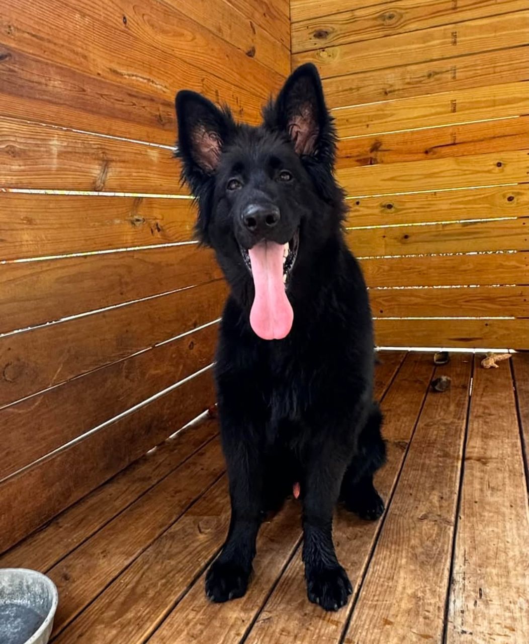 - Mr. Yellow from our Litter AB is a promising young sire in our program. At just 6 months old, his stunning solid black coat and happy, easygoing expression show a puppy with a wonderful and confident temperament. Pictured on a wooden porch with his tongue out and a friendly look, he appears relaxed and comfortable. His plush long coat and playful demeanor are clear indicators of his quality genetics and balanced nature. Mr. Yellow has the potential to develop into a superb sire who will contribute his exceptional health and pleasant personality to his future progeny.