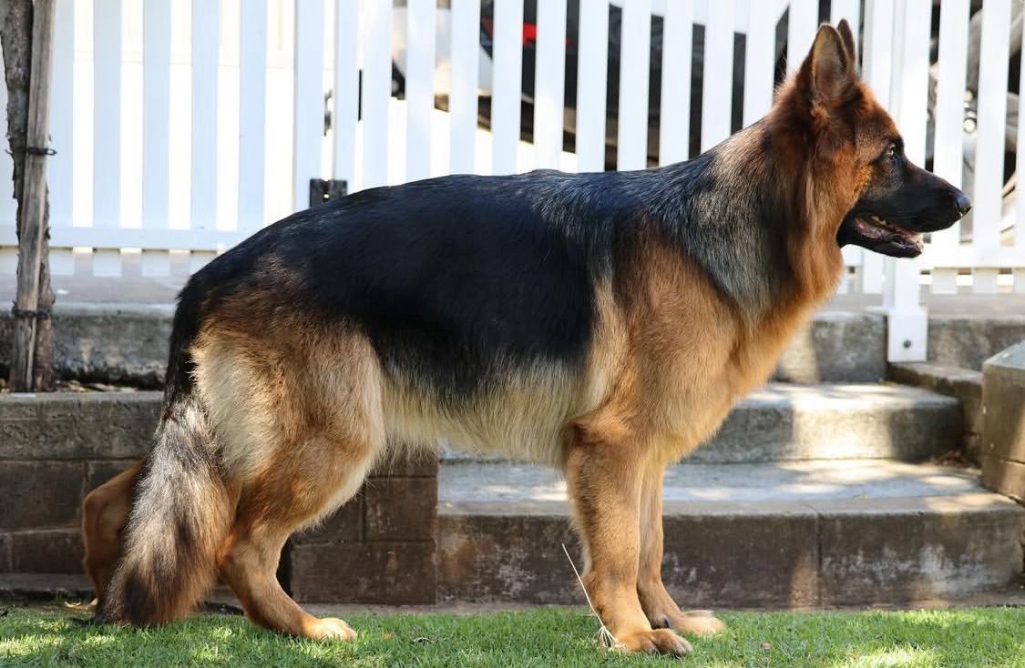 - Mia is an exceptional long coat German Shepherd and a prized dam in our breeding program. Her stunning features are highlighted by a rich and luxurious coat, perfectly blending deep black and classic tan hues. She has a confident and gentle expression, with her intelligent, warm eyes and a friendly, relaxed look. Her calm and attentive demeanor in the photo speaks to her wonderful temperament, which is an ideal trait we are looking for in our dams. Mia's excellent structure and poise are clear indicators of her strong genetic lineage, and we are confident she will pass on her beautiful looks and superb disposition to her puppies.