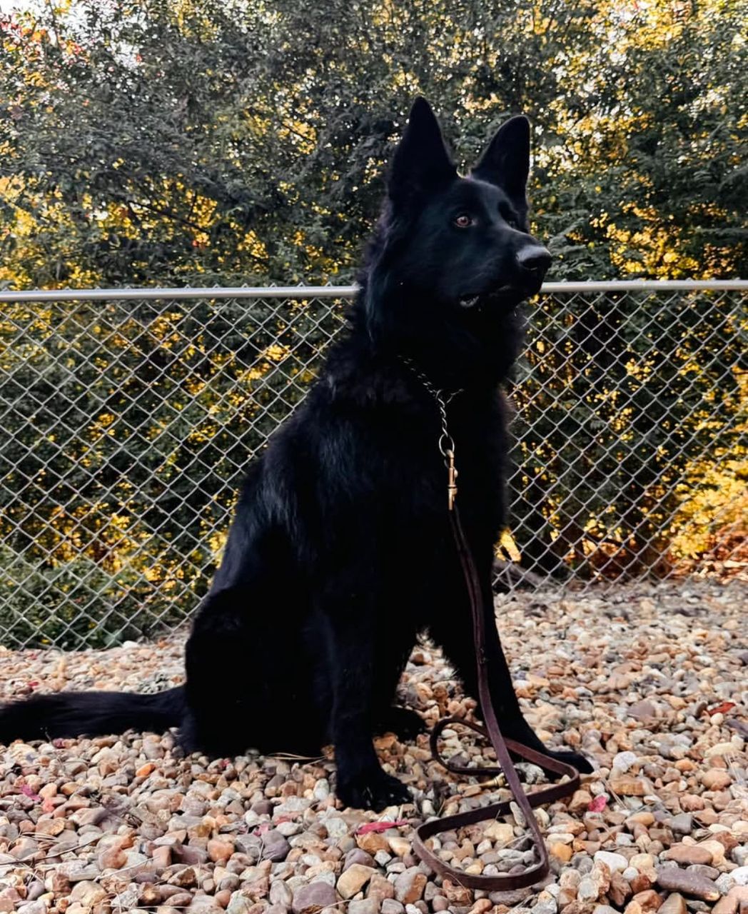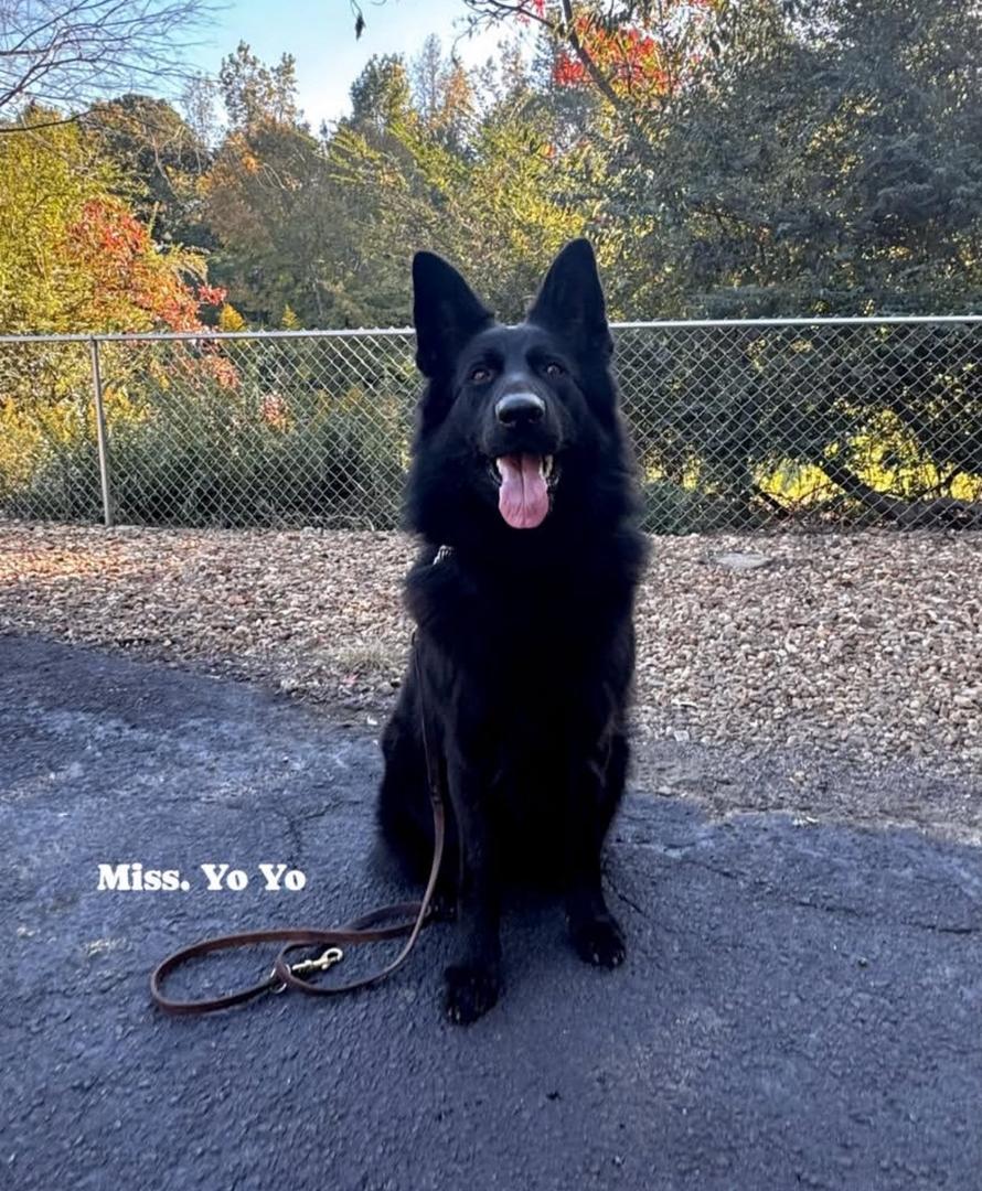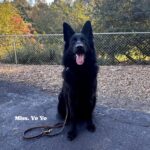 - Miss Yo Yo is a striking long coat German Shepherd with a sleek, jet-black coat that exudes elegance and strength. Her glossy fur catches the light as she sits proudly, her erect ears and alert expression giving her a vigilant yet friendly demeanor. With a sturdy build and a playful tongue out, she seems ready for both adventure and affection. Beneath her commanding appearance lies a warm-hearted companion, likely to greet newcomers with enthusiasm rather than wariness. Miss Yo Yo enjoys her time outdoors, as seen by her poised stance on the leash, and she brings a lively spirit to any setting. We’re excited to see how her charming personality influences her future endeavors!